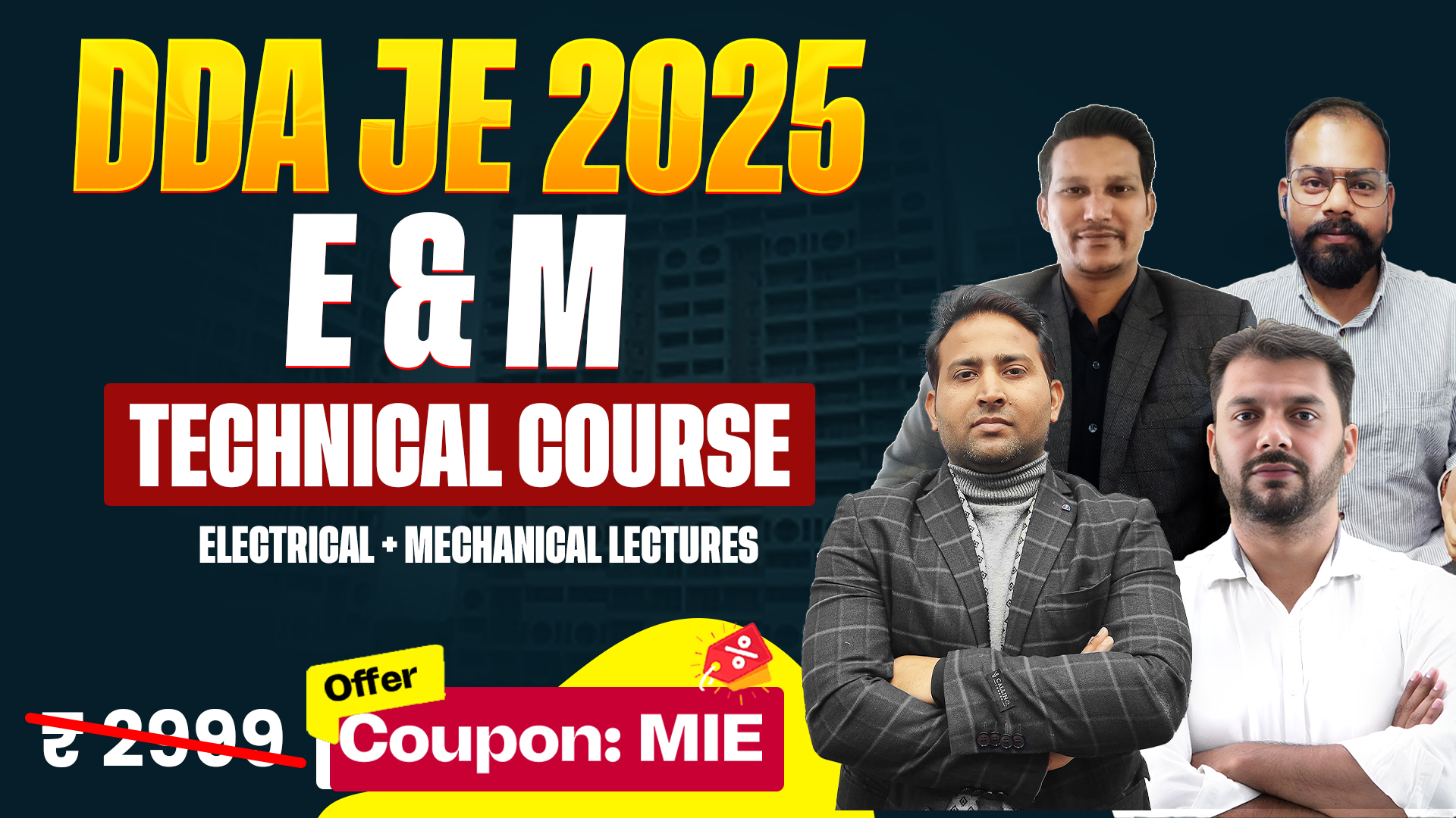 This course includes complete syllabus of DDA JE (E&M) 2025. All Electrical Engineering lectures have been/wiil be delivered by Sony Kartiya Sif while Mechanical Engineering lectures have been/wiil be delivered by Rahul Sir, Jamal Sir and Vivek Sir.